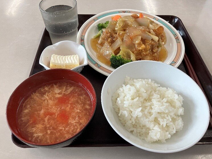 - あんかけからあげ定食。からあげととろ~りあんが絡まり、絶妙なハーモニー。