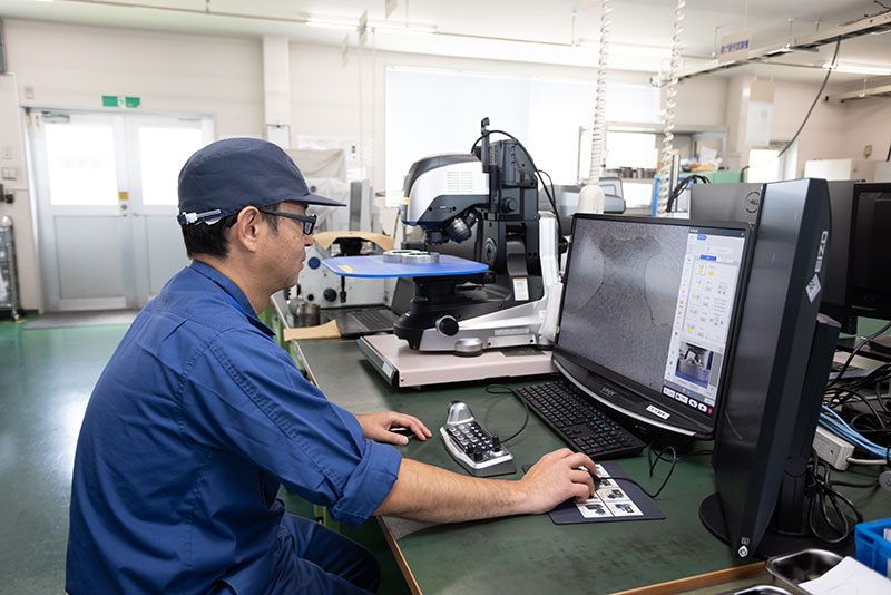数十倍~1000倍以上の高倍率が観察・撮影・測定が可能であり、設備内の照明を切り替えることで様々な対象に対応可能で、主に材料組織や製品外観、調査品の観察に使用しています。